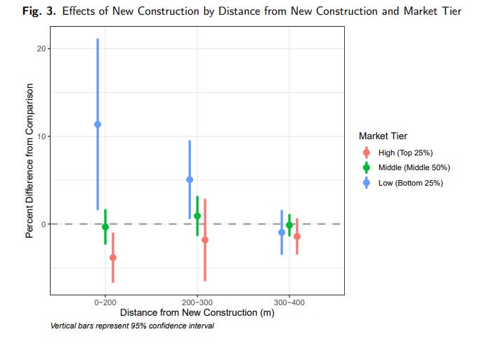 I'd like to see a broader study of this sort but in a city with some form of rent control (which Minneapolis does not have). The NYC study is closer to this (though most of the city isn't rent-stabilized), and showing no effect on low-end units makes it seem like a pretty explicit net positive to me. (Many rent prices are lowered; larger tax base and voting power for the city; more jobs and customers for local shops/restaurants/etc).